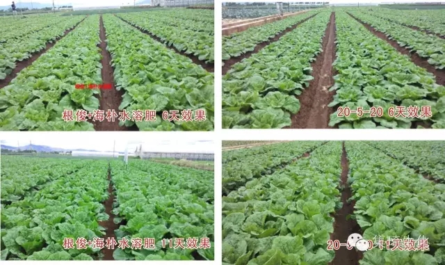 試驗(yàn):為驗(yàn)證根俊+海樸大量元素水溶肥的肥效,2015年6月16日,市場(chǎng)部老師王安葦在白菜地做了根