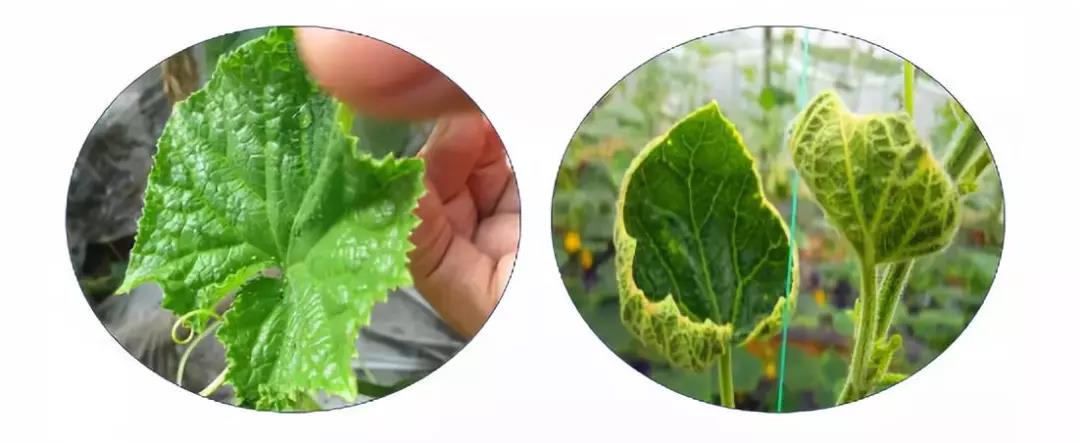 添加蕓苔素未發(fā)生藥害(圖左)和未添加蕓苔素發(fā)生藥害